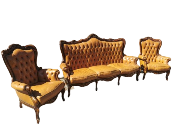 Chaises baroque duo de chaises pour créer votre salon photobooth bois et simili cuir camel, dossier capitonné ∗ longueur 40, largeur 45, hauteur 78 Également un salon baroque vintage complet & de jolis fauteuils bridge en vente ou à la location