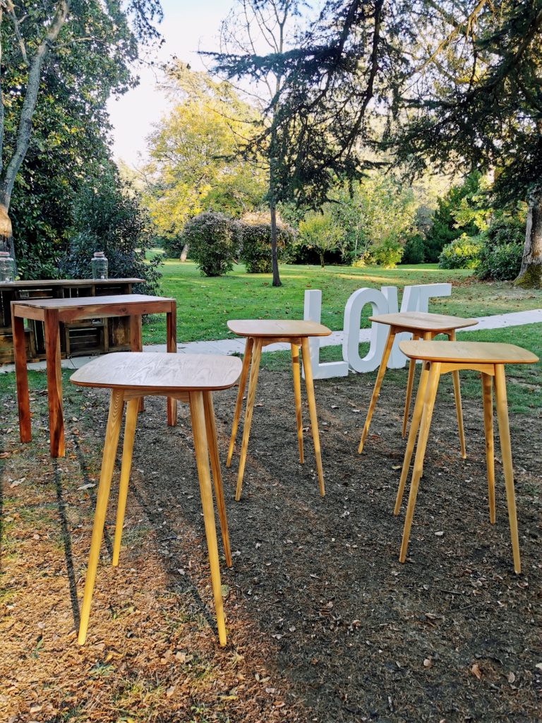 Mange-debout compas tables hautes en bois, 4 pieds compas largeur 56, hauteur 100 4 tables disponibles