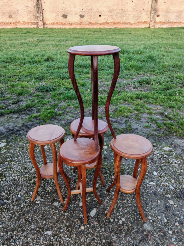 selettes vintage en bois massif, pieds galbés, plateau rond