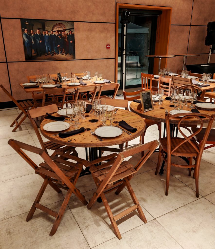 Tables bistrotour création upcycling, piètement en fonte de table bistrot vintage plateau de touret vernis diamètre 90, hauteur 75 => 6 tables diamètre 120, hauteur 75 => 2 tables + également disponibles + TOURETS