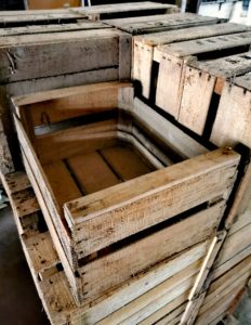 Caisses à fruits vintage (caisses à pommes, caisses à poires, caisses à prunes)